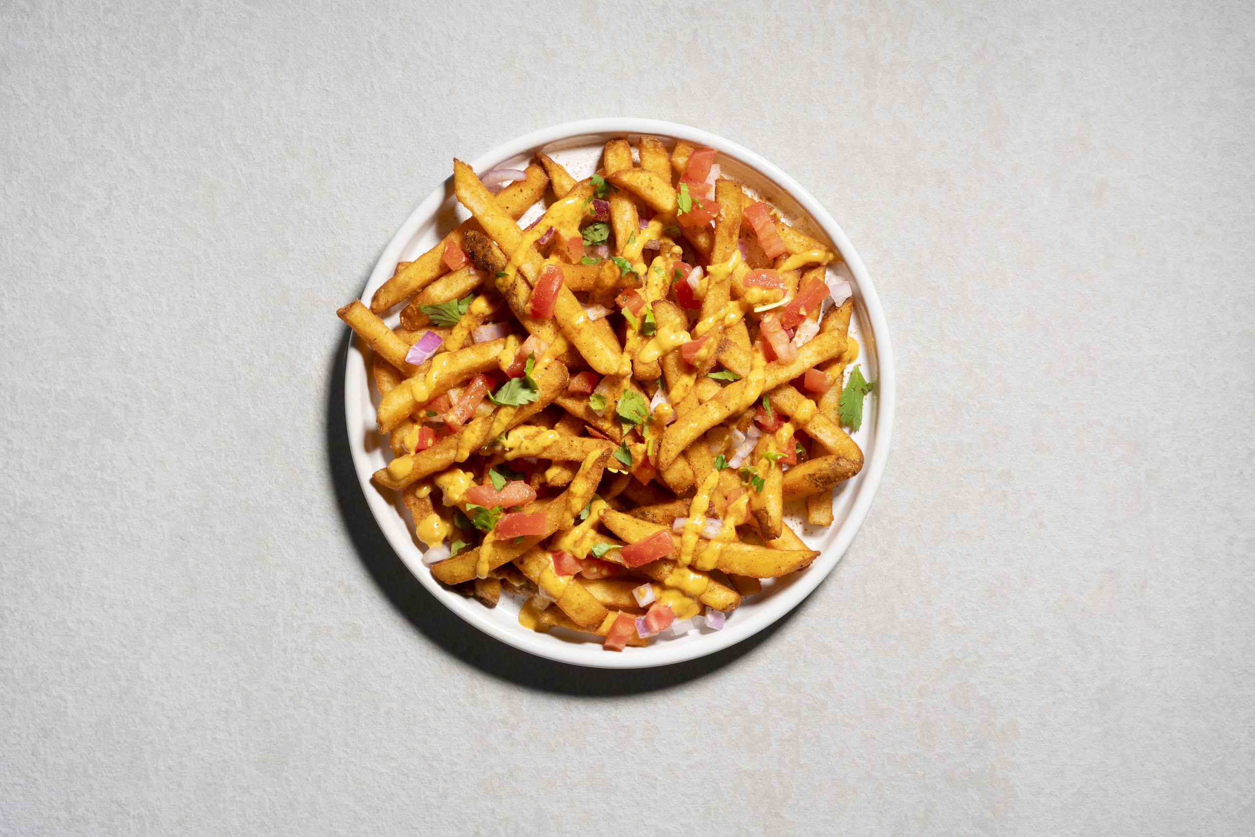 Loaded fries doused with tikka masala, onions, scallions, tomatoes, cilantro covered in sweet and spicy secret spices.