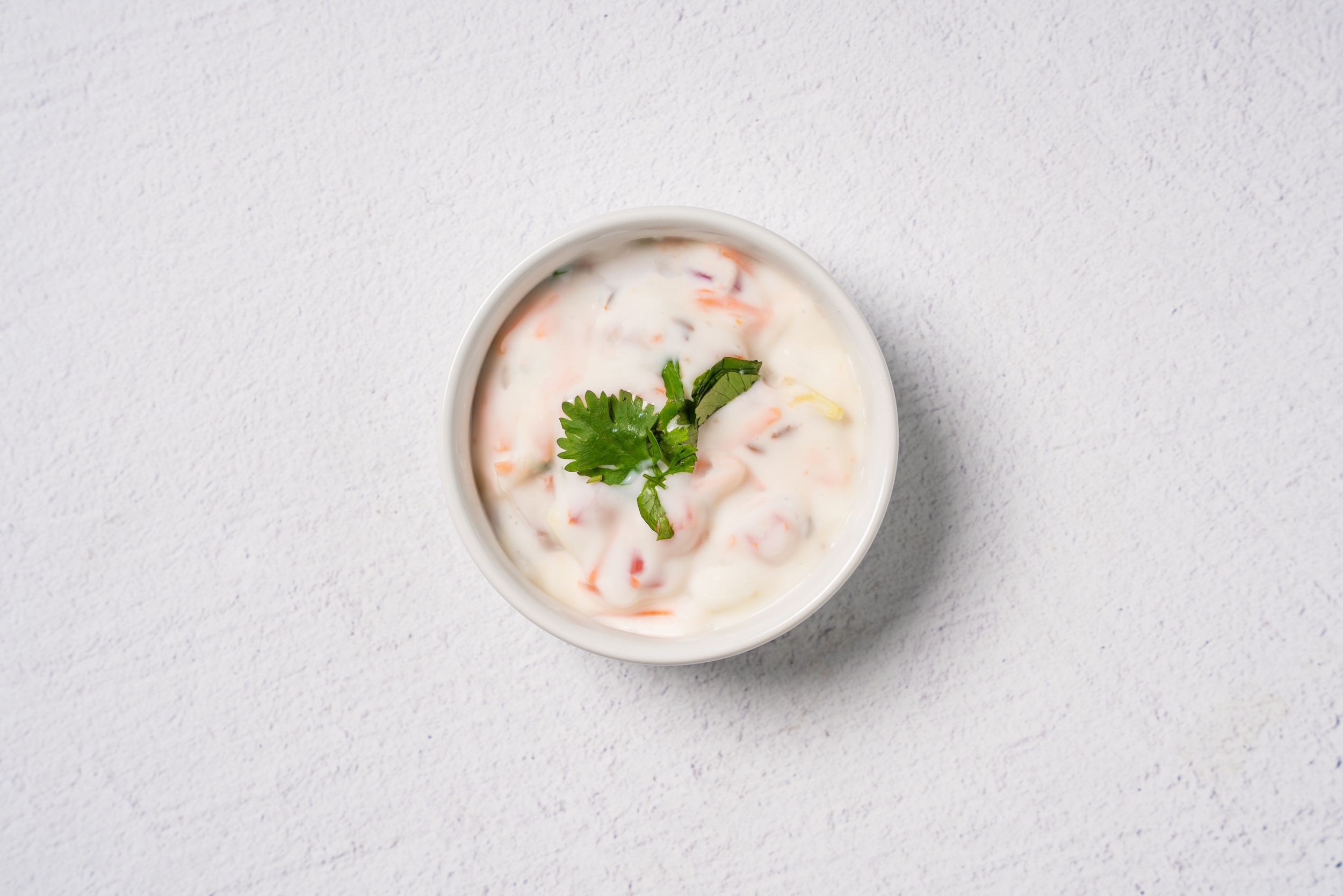Yogurt sauce with cucumber, carrots, tomatoes, onions & cilantro.