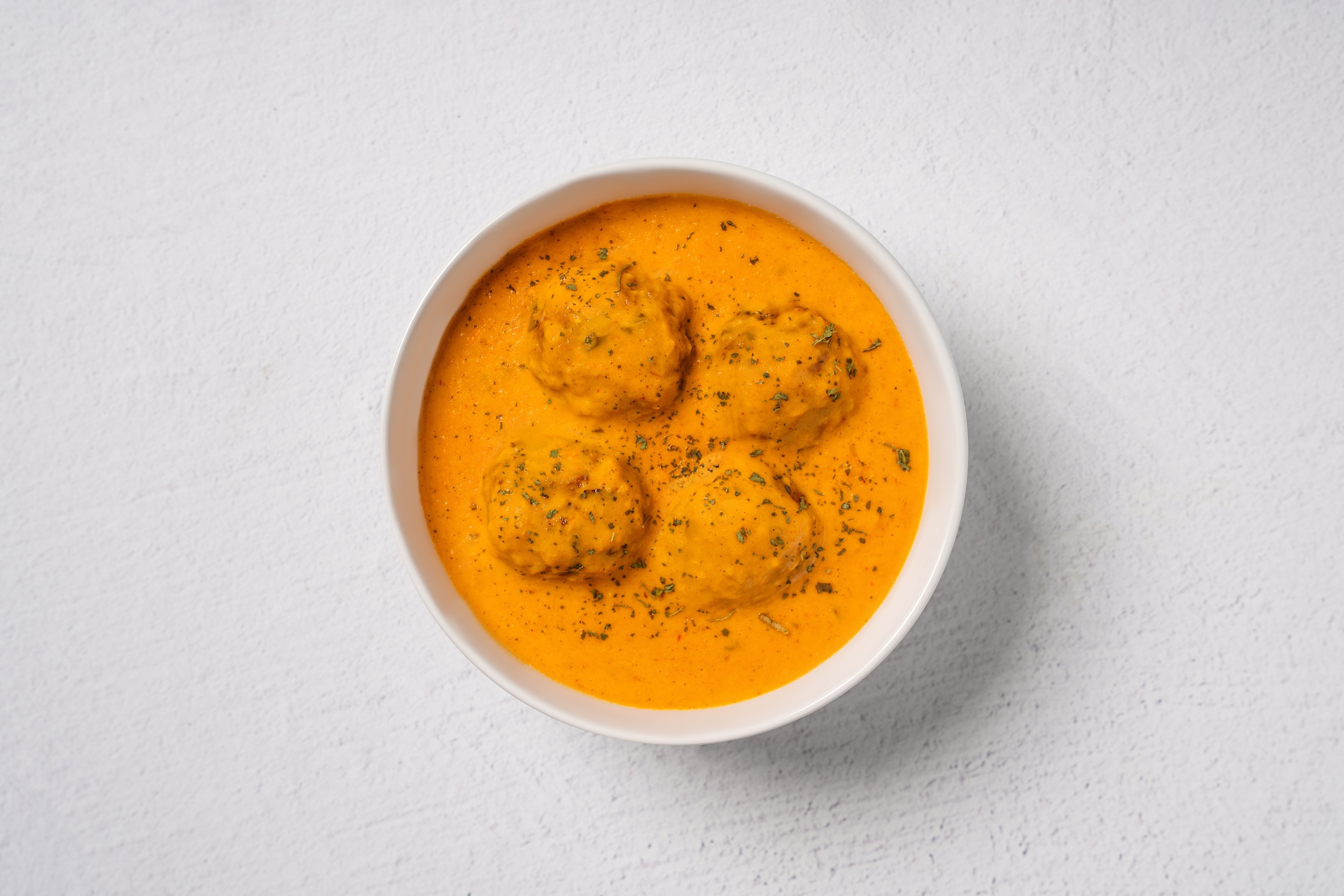 Handmade kofta dumplings made of veggies, potatoes, and paneer in a wholesome yellow curry sauce.