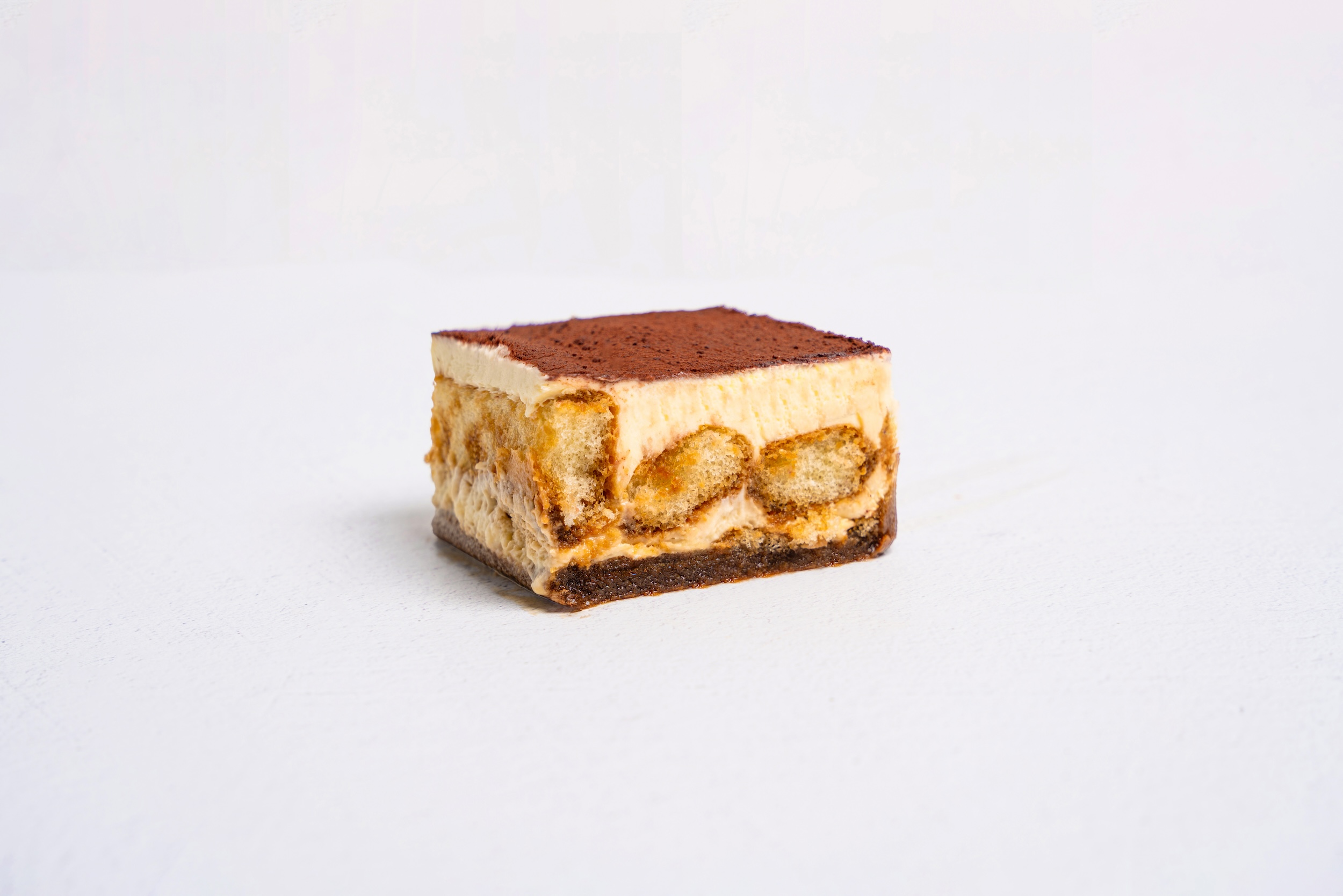 Coffee brandy soaked lady fingers Stacked with sweet mascarpone cream and imported cocoa