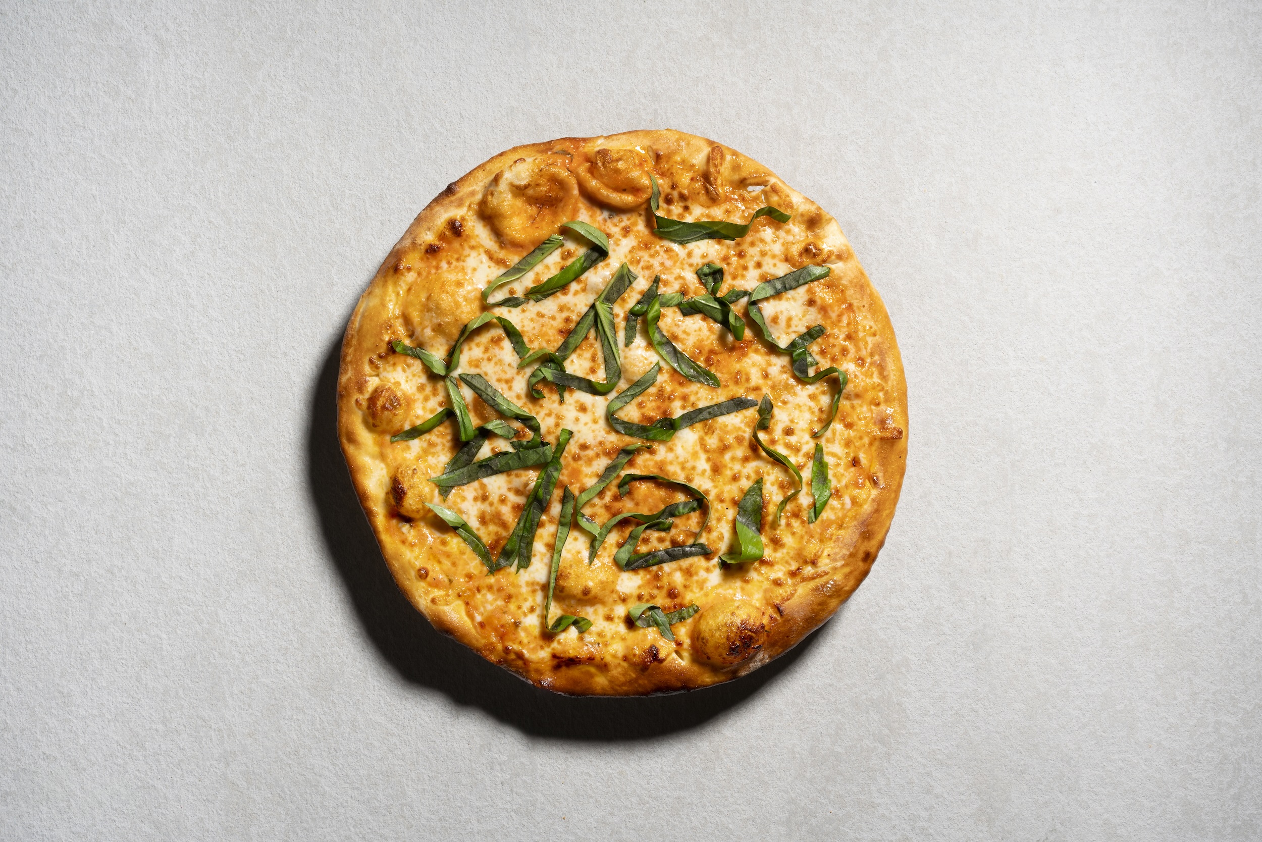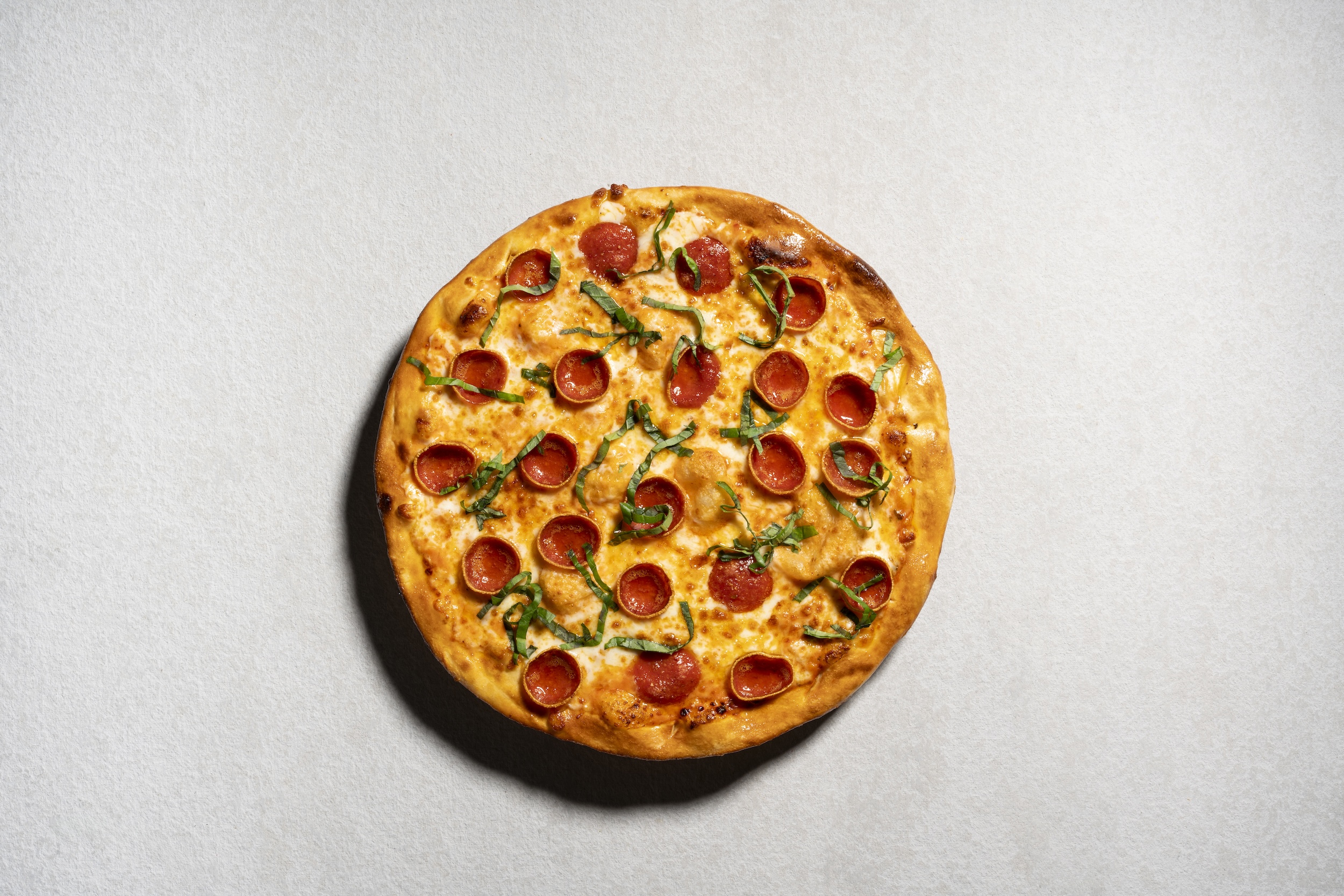 Savory tomato sauce, mozzarella, fresh basil, thin sliced pepperoni